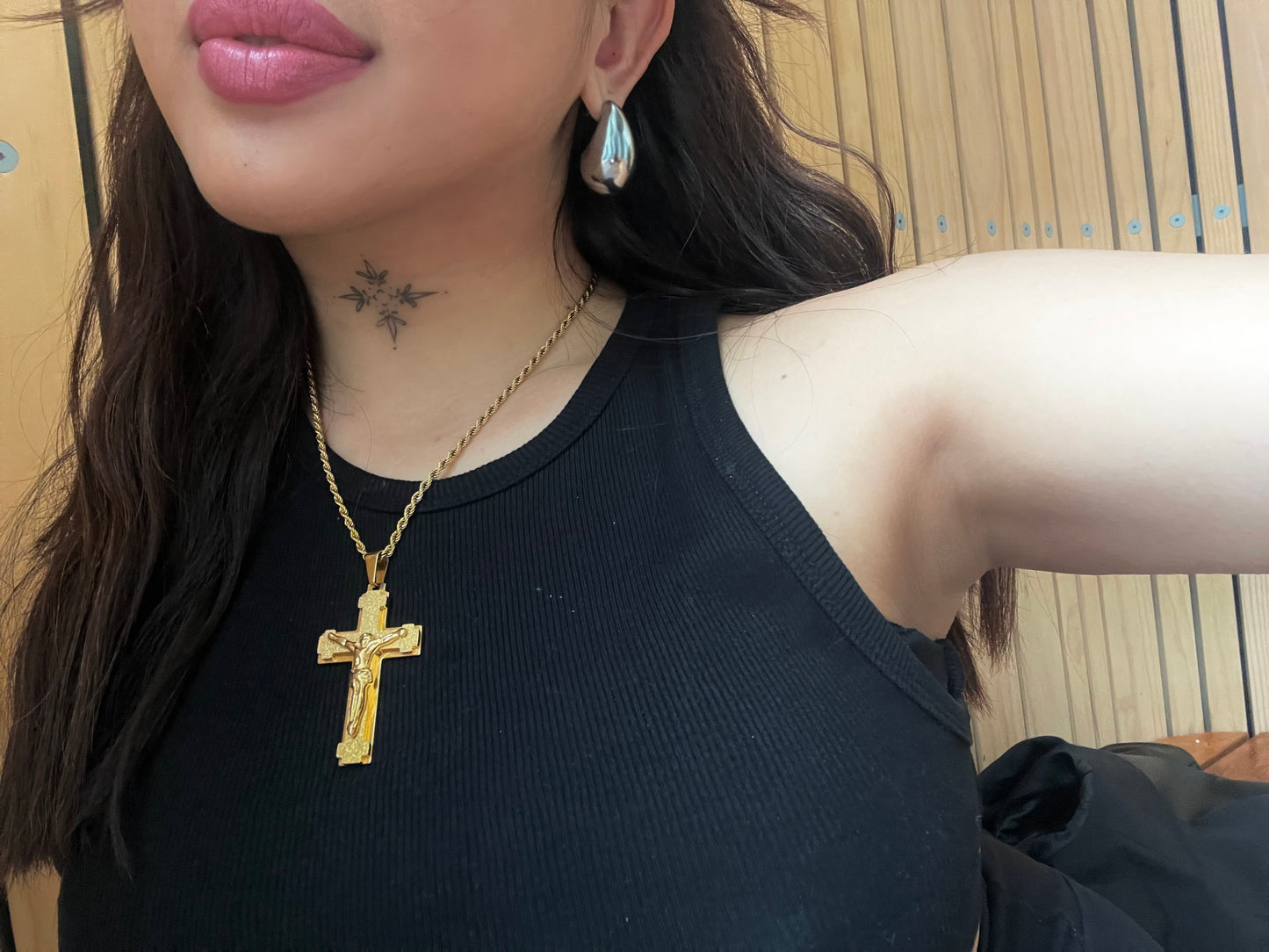 The KOMI CROSS CHAIN is a premium quality necklace that features a unique cross chain design crafted from 18k electroplated gold and titanium steel. This durable and stylish necklace is the perfect accessory for any outfit. Elevate your style with the KOMI CROSS CHAIN today.